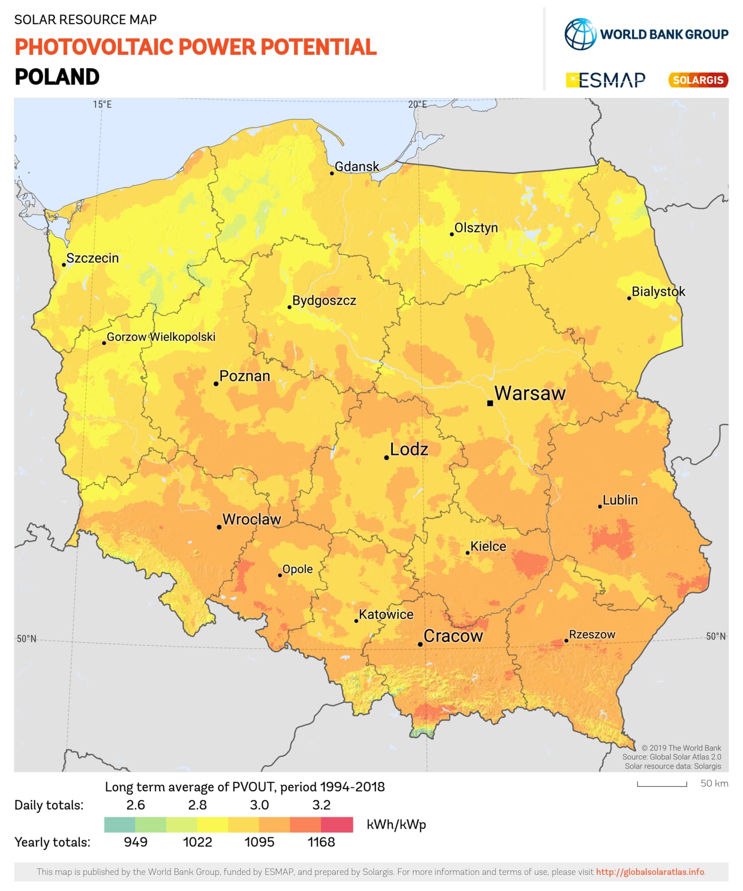 Południe Ukrainy to rejony, na których występuje duże nasłonecznienie, dlatego w tym rejonie inwestuje się w farmy fotowoltaiczne (można to zobaczyć na mapie elektrowni w Produkcja ).